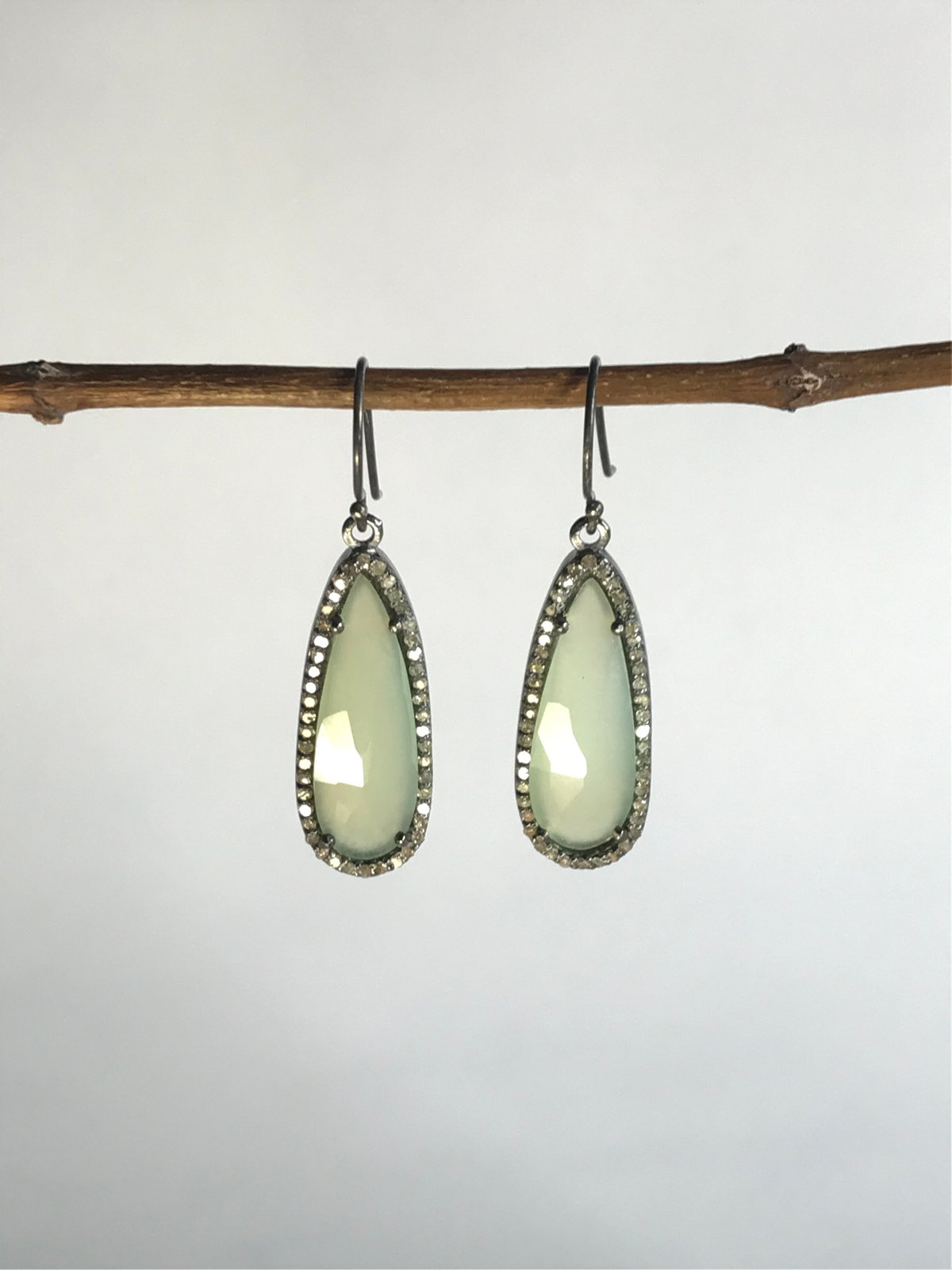 Pale Green Chalcedony and Diamond Teardrop Earrings