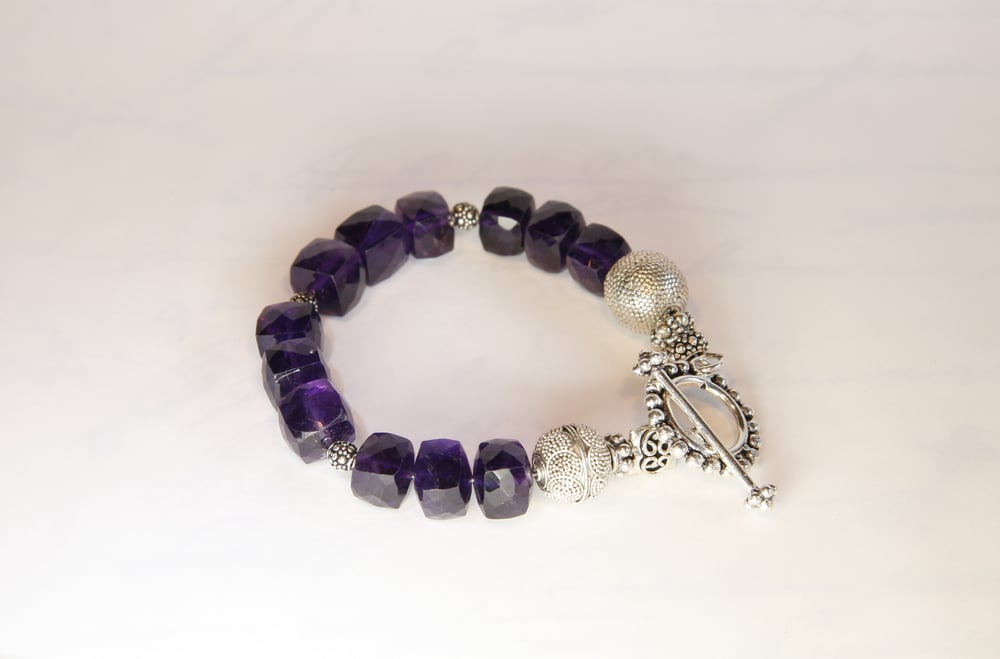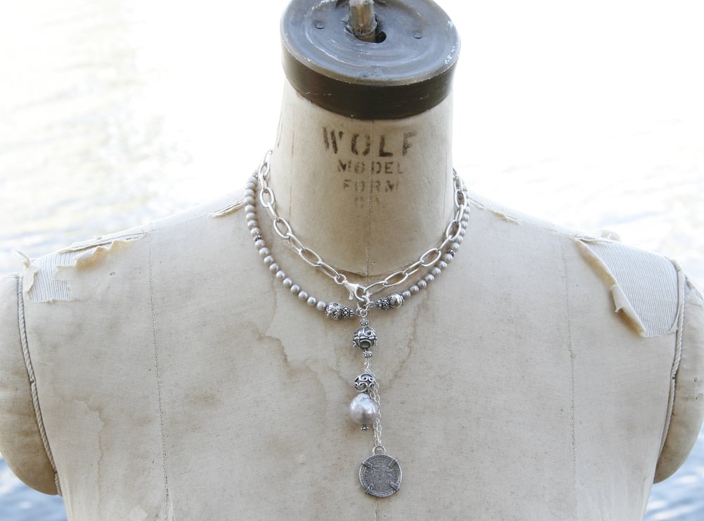 Mixed Chain with faceted Amethysts and Baroque Pearl