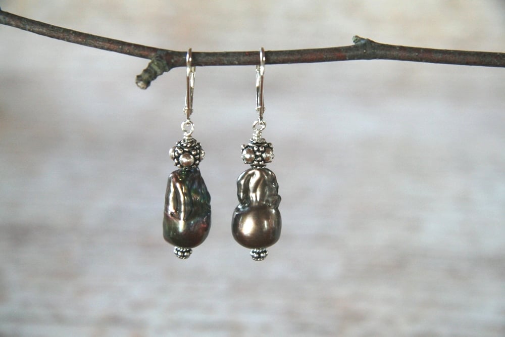 Dark Peacock Baroque Pearl Earrings